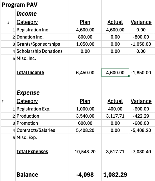 Plan • Actual • Variance
